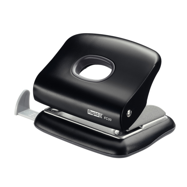 Odolná kovová děrovačka s ramenem a základnou z vyztuženého plastu ABS. Pro použití doma, ve škole i v kanceláři.