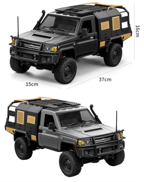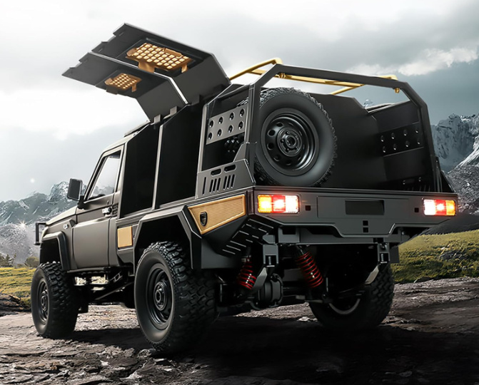 RC auto Land Cruiser TOYOTA Supertourer 1/12Toyota Land Cruiser je auto na dálkové ovládání, které vychází z reálného vozu Toyota LC79. Díky kvalitnímu a realistickému zpracování se jedná o licencovaný model Toyota. Design modelu je vyladěný do posledního detailu. Nádherná, kvalitní karoserie věrně kopíruje linie reálného vozu. RC auto Land Cruiser Toyota už od nás možná znáte v červené, pískové či stříbrné verzi. Verze Supertourer se od nich liší specifickou zadní korbou.Terénní RC auto Toyota SupertourerEdice Supertourer je vybavena zadní korbou, která má otevírací bočnice, celkem 4, pro snadný přístup k nákladu. Celá korba se dá navíc sejmout a vznikne vám tak verze pick-up. Světlá výška modelu je 40 mm, v kombinaci s pohonem všech čtyř kol a silným motorem si poradí se stoupáním pod úhlem až 46°. Měkké pneumatiky s hlubokým vzorkem jsou vyrobeny z velmi kvalitní soft gumy, zajišťují skvělou trakci. RC model auta je vyrobený z odolného, pružného plastu, díky tomu dokáže držet s dětmi tempo od jejich útlého věku. Navíc jsou k dispozici dva rychlostní režimy, mezi kterými jednoduše přepínáte pomocí tlačítka na dálkovém ovládání. Pro nejmenší je vhodný pomalejší režim, kdy model jede rychlostí cca 4 km/h. Zkušenější řidiči využijí rychlost 8 km/h.Land Cruiser TOYOTA Supertourer v plné výbavěPropracovaná karoserie je designována s přesností na každý detail. Součástí balení jsou i veškeré doplňky karoserie, jako jsou stěrače, kliky atd. Plné výbavě odpovídá i LED osvětlení, fungují potkávací, obrysová, směrová i brzdová světla. Podržením tlačítka pro vypnutí osvětlení lze zapnout i varovná světla.52 minut jízdyNově je tato verze RC modelů vybavena akumulátorem 7,4V 1200mAh Li-ion, který je umístěn přímo pod kapotou, což ještě zlepšuje jízdní vlastnosti vozu a umožňuje to snadný přístup k akumulátoru. Na jedno nabití vydrží jezdit 52 minut. Nabijete ho přiloženou USB nabíječkou. Pistolové ovládání se velmi pohodlně drží levou rukou, pomocí ukazováčku přidáváte či ubíráte plyn a pravou rukou zatáčíte. Ovládání je plně proporcionální, to znamená, že auto ihned reaguje na sebemenší změnu a vy tak můžete plynuje regulovat rychlost i úroveň zatáčení od minima až do maxima. Ovládání funguje na frekvenci 2.4Ghz, takže se vám model nebude s žádným dalším rušit a můžete tak vyrazit ven s tatínkem, sourozencem i kamarádem a užít si tak spoustu zábavy. Obsah balení: RC auto TOYOTA Supertourer akumulátor 7,4 V 1200 mAh Li-ion dálkové ovládání USB nabíječka Technické parametry: Měřítko: 1/12 Konstrukce auta: crawler Délka auta: 37 Šířka auta: 15 Výška auta: 16 Auto je vhodné na ven: ano Barva: černá Auto je vhodné do interiéru: ano Typ motorů v autě: stejnosměrné Rychlost auta: 8 Kapacita akumulátoru v autě: 1200 Napětí akumulátoru v autě: 7.4 Typ akumulátoru do auta: Li-ion Typ nabíječky: USB Výměnný akumulátor v autě: ano Napájení ovladače k autu: 2xAA Doba jízdy auta: 52 Dosah ovládání auta: 70 Frekvence ovládání RC auta: 2,4Ghz Konstrukce ovladače k autu: Pistolový Plynulá regulace rychlosti: ano Plynulá řízení zatáčení: ano Voděodolnost (stříkající voda): ano Vodotěsnost (potopení): ne