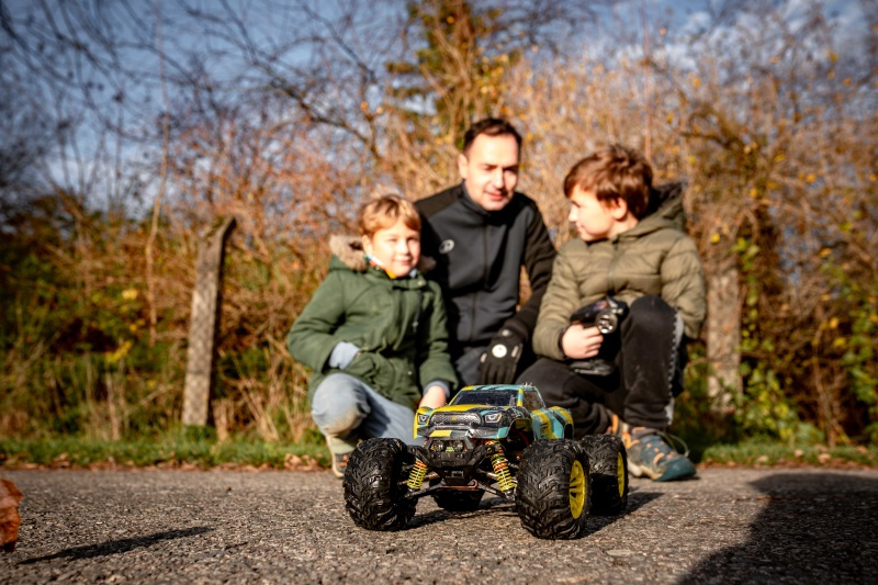 Obsah balení: RC monster truck Akumulátor Li-ion 4200 mAh USB balanční nabíječka Dálkové ovládání 2,4 GHz Technické parametry: Měřítko: 1/10 Konstrukce auta: monster Délka auta: 40 Šířka auta: 28 Výška auta: 15 Auto je vhodné na ven: ano Barva: zelená Auto je vhodné do interiéru: ne Typ motorů v autě: střídavé Rychlost auta: 52 Kapacita akumulátoru v autě: 4200 Napětí akumulátoru v autě: 7.4 Typ akumulátoru do auta: Li-Po Typ nabíječky: USB Výměnný akumulátor v autě: ano Napájení ovladače k autu: 3xAA Doba jízdy auta: 15 Dosah ovládání auta: 60 Frekvence ovládání RC auta: 2,4Ghz Konstrukce ovladače k autu: Pistolový Plynulá regulace rychlosti: ano Plynulá řízení zatáčení: ano Voděodolnost (stříkající voda): ano Vodotěsnost (potopení): ne