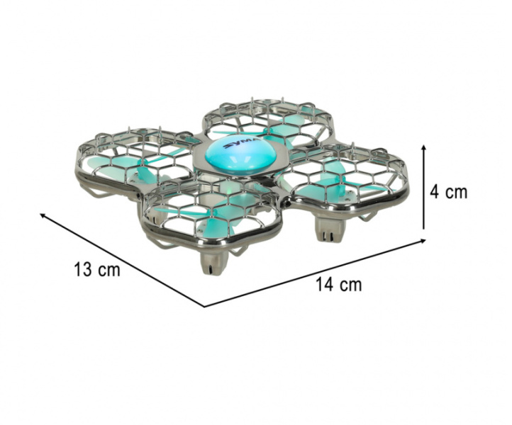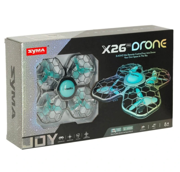 Obsah balení: Dron Syma X26PRO Dálkový ovladač USB nabíjecí kabel USB-C Náhradní vrtule 4 ks Technické parametry: Délka dronu: 14 Šířka dronu: 13 Hmotnost dronu: 59 Výška dronu: 4 Vhodný na ven: ano Vhodný do interiéru: ano Typ motorů: stejnosměrné Barva: stříbrná Dron je vybaven kamerou: ne Kapacita akumulátoru v dronu: 700 Napětí akumulátoru v dronu: 3.7 Doba nabíjení dronu: 90 Doba letu: 9 Typ nabíječky pro dron: USB Výměnný akumulátor v dronu: ne Napájení ovladače dronu: 4xAAA Dosah dronu: 20 Frekvence ovládání dronu: 2,4Ghz Barometr: ano Automatický start/přistání: ano GPS: ne Návrat dronu domů: ne Folow me (následuj mě): ne Detekce překážek: ano Headless mode: ano 3D akrobacie: ano Osvětlení dronu: ano