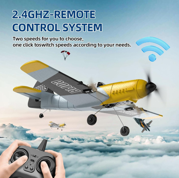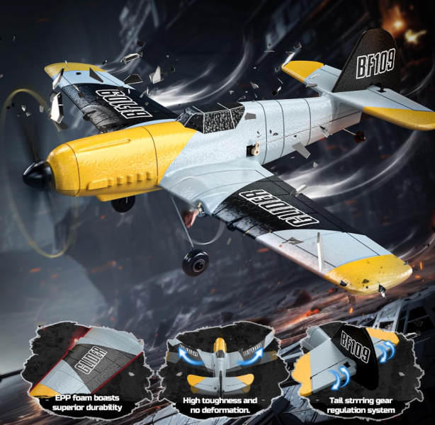 Letadlo na dálkové ovládání BF109 FigherLetadlo na dálkové ovládání BF109 vyniká propracovaným designem. Vyrobené je z ultralehkého a flexibilního EPP materiálu. Díky tomu je letadlo extrémně odolné a hodí se pro začátečníky a děti. Řízení napomáhá vestavěný gyroskop, který vyrovnává let do vodorovné polohy při jakémkoliv zakolísání. Model létá vyrovnaně a doslova klouže ve vzduchu.Výkonné motory a výškovkaDva výkonné motory zajistí bezpečný let i za mírně nepříznivého počasí. Začátečníky potěší pomalejší mód, zatímco zkušené veterány mód rychlejší. Díky výškovce můžete stoupat či klesat, aniž byste museli přidávat či ubírat plyn. Letadlo dokáže startovat ze země i z ruky.Nabíjecí akumulátorSoučástí je nabíjecí akumulátor LiPo 3,7 V 300 mAh, který nabijete pomocí USB nabíječky za cca 60 minut. Doba letu závisí na více faktorech, především na stylu letu nebo počasí. Průměrně se pohybuje okolo 20 minut. Rozpětí křídel letounu je 37 cm.Jedná se o RC letadlo RTF, tzn. že je sestavené a připravené k letu. Jediné, co musíte dokoupit jsou 3 x AAA baterie do ovladače. Dálkové ovládání funguje na frekvenci 2,4 GHz. Můžete létat s tátou či partou kamarádů, tvořit formace, aniž by se letadla vzájemně rušila. Obsah balení: RC letadlo USB nabíječka Akumulátor Náhradní vrtule Technické parametry: Rozpětí: 37 Délka letadla: 32 Hmotnost: 58 Frekvence ovladače: 2,4Ghz Napětí akumulátoru: 3.7 Kapacita akumulátoru: 300 Typ akumulátoru: Li-Po Doba nabíjení: 60 Doba letu: 20 Baterie ovladače: 3xAAA Počet kanálů: 3 Kamera: ne