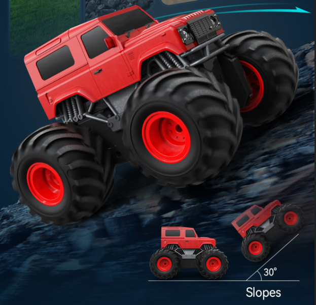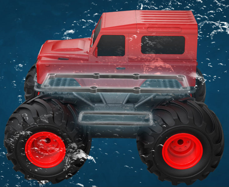 RC obojživelník LAND ROVER DEFENDER 90Land Rover Defender 90 je skvělý parťák pro nejmenší závodníky, můžete s ním řádit doma, venku, ale hlavně ve vodě. Je totiž vodotěsný! Nezastaví ho ani nepřízeň počasí, naopak ho konečně můžete využít naplno při projíždění kalužemi.Velká měkká kola a pohon 4x4Obojživelné RC auto Defender je vyrobeno z velmi kvalitního a odolného plastu, věrná kopie tohoto legendárního vozu je usazena na pevném podvozku. Veliká měkká kola s gumovými pneumatikami zajišťují nejen skvělou trakci, ale i dobré jízdní vlastnosti. S pohonem všech 4 kol zvládne i menší překážky. Bez problémů si poradí na zpevněných plochách a v nenáročném terénu. Jedinečný styl zatáčení způsobuje, že se dokáže otočit na místě o 360°.Jednoduché ovládáníDálkové ovládání funguje na frekvenci 2,4 Ghz, díky této frekvenci je možné provozovat více RC modelů na jednom místě, aniž by se vám vzájemně rušily. Páčkový ovladač je malinký, skvěle padne do dětských ručiček. Levou páčkou ovládáte jízdu vpřed a vzad, pravou páčkou zatáčení. Pomocí tlačítek na ovladači je možné seřídit přední nápravu na střed. RC auto jezdí rychlostí cca 3 km/h. Do ovladače potřebuje 2 x AA baterie.Nabíjecí akumulátorSoučástí je nabíjecí akumulátor Li-ion 3,7 V 500 mAh s SM konektorem. Nabijete ho přiloženou USB nabíječkou za cca 3 hodiny. Dobu jízdy lze prodloužit přikoupením dalšího akumulátoru Li-ion 3,7 V 500 mAh . Vodotěsné pouzdro pro akumulátor je snadno přístupné ze spodní strany RC auta, díky tomu je výměna akumulátoru jednoduchá, nepotřebujete k tomu ani šroubovák. Obsah balení: RC obojživelník Defender Akumulátor USB nabíječka Dálkové ovládání Technické parametry: Měřítko: 1/18 Konstrukce auta: monster Délka auta: 20 Šířka auta: 17 Výška auta: 14 Auto je vhodné na ven: ano Barva: červená Auto je vhodné do interiéru: ano Typ motorů v autě: stejnosměrné Rychlost auta: 3 Kapacita akumulátoru v autě: 500 Napětí akumulátoru v autě: 3.7 Typ akumulátoru do auta: Li-ion Typ nabíječky: USB Výměnný akumulátor v autě: ano Napájení ovladače k autu: 2xAA Doba jízdy auta: 20 Frekvence ovládání RC auta: 2,4Ghz Konstrukce ovladače k autu: Páčkový Plynulá regulace rychlosti: ne Plynulá řízení zatáčení: ne Voděodolnost (stříkající voda): ano Vodotěsnost (potopení): ano
