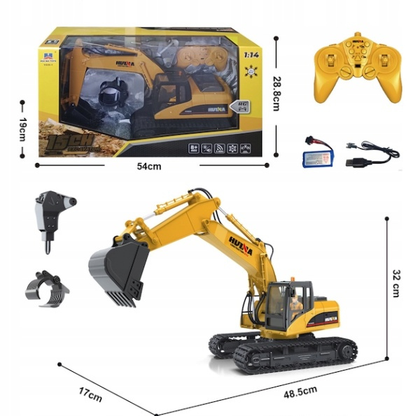 Hledáte dokonalý doplněk do vaší sbírky stavebních strojů? Nebo možná hledáte jedinečný dárek, který oslní a nadchne každého nadšence do stavební techniky? Představujeme vám náš pásový bagr s kovovou lžící, drapákem a bouracím kladivem, model v měřítku 1:14. Tento model není jen dalším kouskem plastu na poličce – je to věrně zpracovaný, plně funkční RC model, který přináší skutečný zážitek z ovládání bagru přímo do vašich rukou.Klíčové vlastnosti:2,4 GHz frekvence: S pokročilou technologií 2,4 GHz nabízí tento model stabilní a bezproblémové ovládání bez rušení.15 kanálů: Vysoce pokročilé ovládání, které vám umožní přesně manévrovat a provádět komplexní úkony.680° rotace: Umožňuje vám otáčet bagr téměř o dvě celá kola, což přidává na realismu a funkčnosti.LED osvětlení: Nechte se oslnit efektním LED osvětlením, které vám umožní pracovat i za tmy.Funkční rameno: Plně funkční bagrovací rameno, které je snadno ovladatelné pomocí dálkového ovladače.Kvalitní zpracování: Vysoká odolnost a preciznost v každém detailu pro dlouhou životnost a spolehlivost.Jednoduché ovládání: Intuitivní dálkové ovládání, které zvládne každý, od začátečníka po zkušeného nadšence.Drapák a bourací kladivo: Dva výměnné nástroje, které zvyšují variabilitu a možnosti použití.Proč si tento model opravdu zamilujete:Realistický vzhled a funkčnost: Tento model je navržen tak, aby co nejvěrněji napodoboval skutečný bagr. Každý detail, od pohybu ramene po LED osvětlení, je pečlivě zpracován tak, aby vám poskytl autentický zážitek.Dlouhá životnost a kvalita: Díky použití kvalitních materiálů a preciznímu zpracování se můžete spolehnout na dlouhou životnost a odolnost tohoto modelu. Pásy z pravé gumy poskytují enormní přilnavost na širokou škálu povrchů, což znamená, že můžete bagrovat kdekoliv chcete.Univerzální použití: S drapákem a bouracím kladivem můžete nejen bagrovat, ale také provádět různé stavební úkony, což z tohoto modelu dělá skutečně multifunkční nástroj.Snadné ovládání: S dálkovým ovládáním na dvě tužkové baterie AA je ovládání tohoto modelu hračkou. Už žádné složité nastavení nebo komplikované ovládání – jednoduše vložte baterie a jste připraveni začít.Efektní LED osvětlení: LED osvětlení nejenže přidává na atraktivitě modelu, ale také zlepšuje viditelnost při práci za šera nebo za tmy. Užijte si bagrování kdykoliv během dne.Jedinečný zážitek: Tento model není jen hračkou – je to plnohodnotný zážitek, který vám umožní zažít radost z ovládání skutečného bagru. Od prvního okamžiku, kdy vezmete dálkové ovládání do ruky, budete fascinováni jeho realistickým chováním a přesností.Technické údaje:Ovladač 2,4 GHz, 15 kanálůDosah až 25 metrůAkumulátor 7,4V / 500 mAhDoba jízdy až 30 minutDoba nabíjení cca 3 hodinyMěřítko 1:14Délka 485 mmŠířka 170 mmVýška 320 mmObsah balení:RC Bagr 1:14Dálkové ovládání 2,4 Ghz Akumulátor 7,4V / 500mAh baterieNabíječ USBDrapák + bourací kladivoNávodModel je vhodný pro děti od 8 let. Pro zprovoznění budete potřebovat 2x AA baterie do vysílače. Pro náhladní díly navštivte naší sekci náhradních dílů, nebo zašlete poptávku e-mailem.