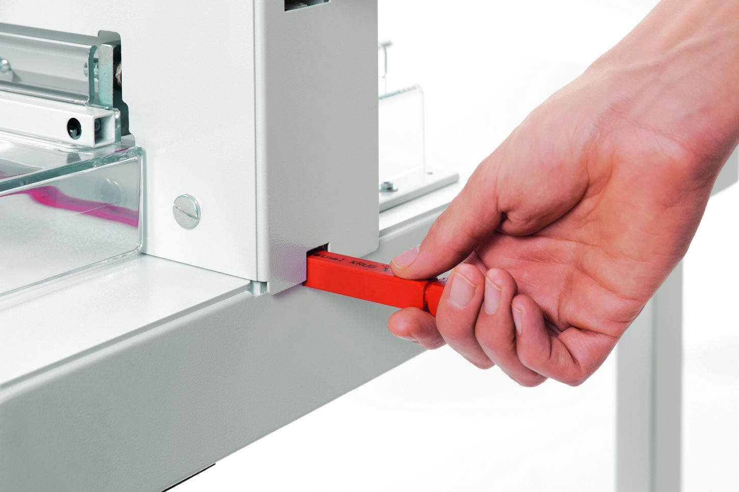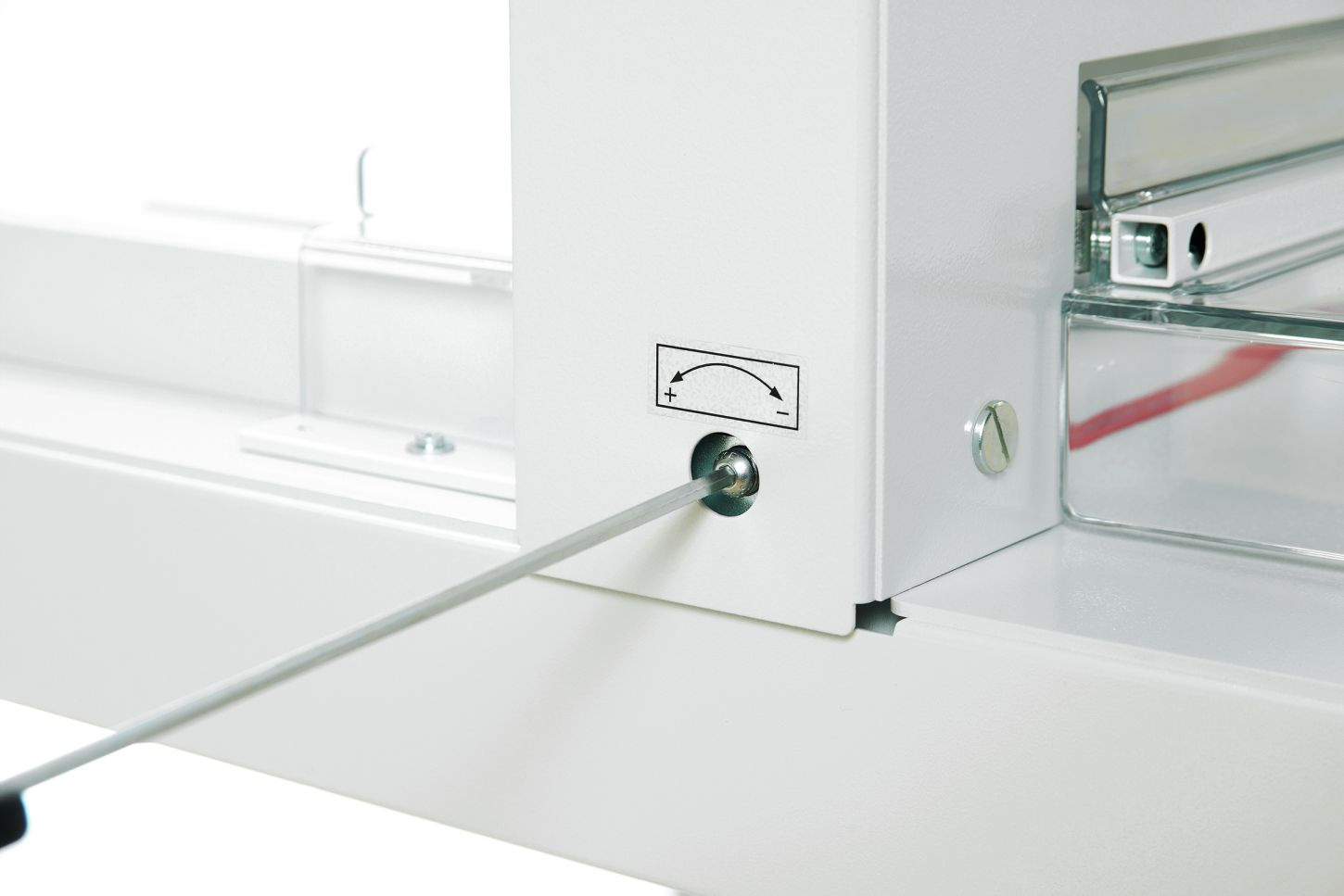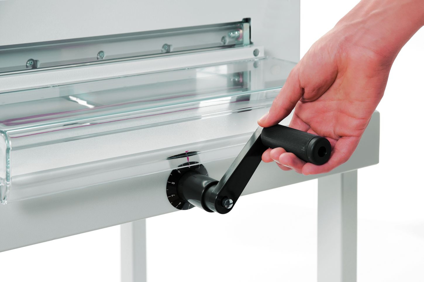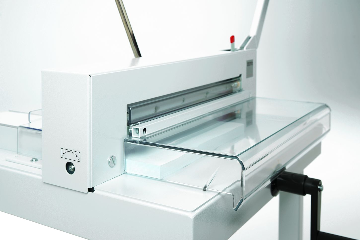 - snadná a bezpečná výměna nože z přední strany bez nutnosti sundání krytů řezačky