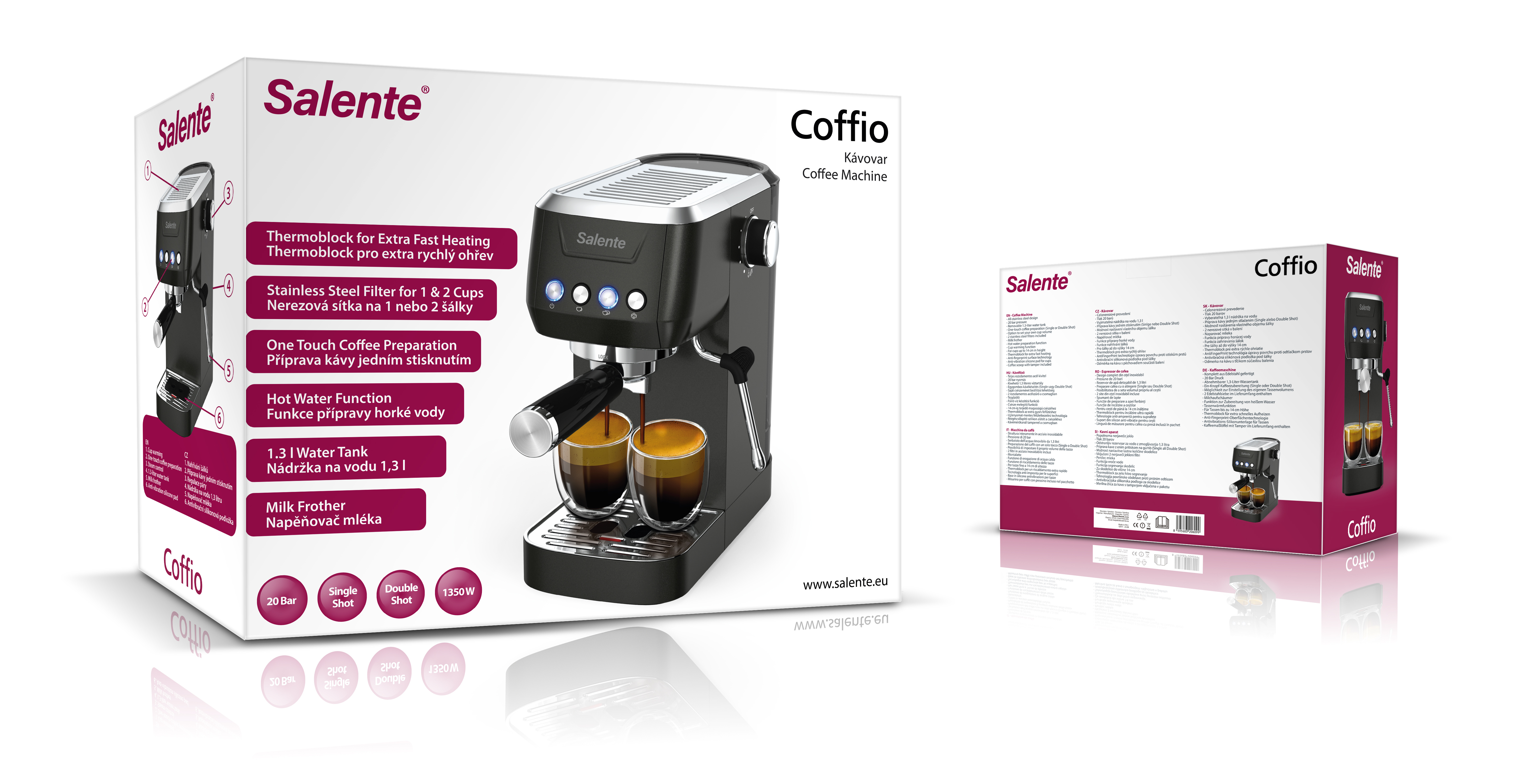 Značka Salente, inspirovaná půvabným italským regionem, přináší do vaší kuchyně špičkový pákový kávovar, který u vás doma vytvoří atmosféru pravé italské kavárničky. Italové moc dobře vědí, že skvělá káva je důležitý rituál, který dokáže každé všední ráno proměnit v příjemný zážitek. A právě proto je tady Salente Coffio – elegantní přístroj, s nímž si snadno připravíte svou oblíbenou kávu. Přesně podle svých představ, v pohodlí domova a bez zbytečných starostí.