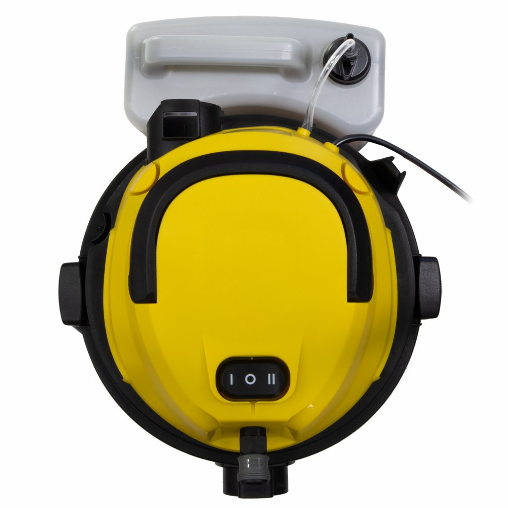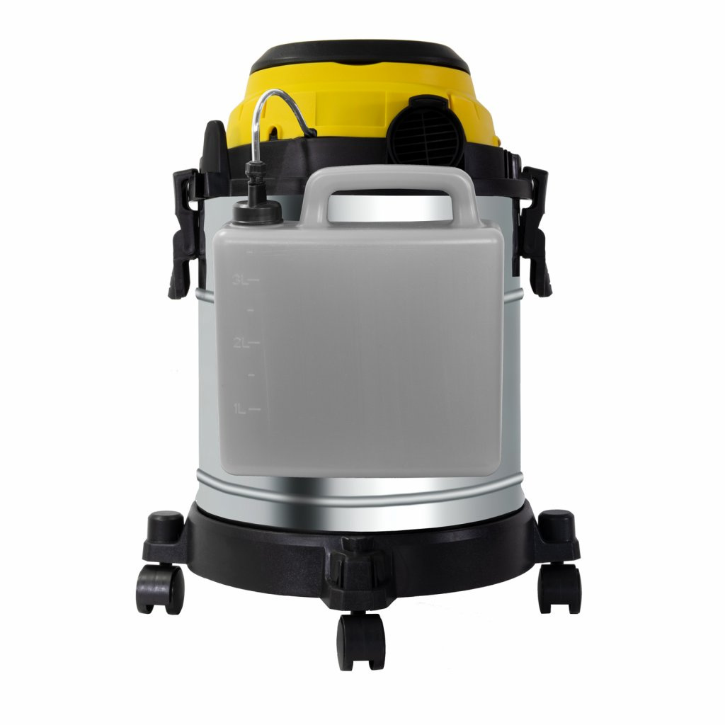 Tělo vysavače je vyrobeno pevného plastu, odolného proti nárazům a rzi. Masivní madlo a čtyři pojezdová kola zajistí snadnou manipulaci a stabilitu. Velký objem nádoby na odpad a odnímatelné nádoby na saponát zajistí úklid po dlouhou dobu. Dvě kovové trubky, vysávací hadice a dlouhá přívodní napájecí šňůra zajistí dostatečně velký akční rádius pro úklid vaší domácnosti.