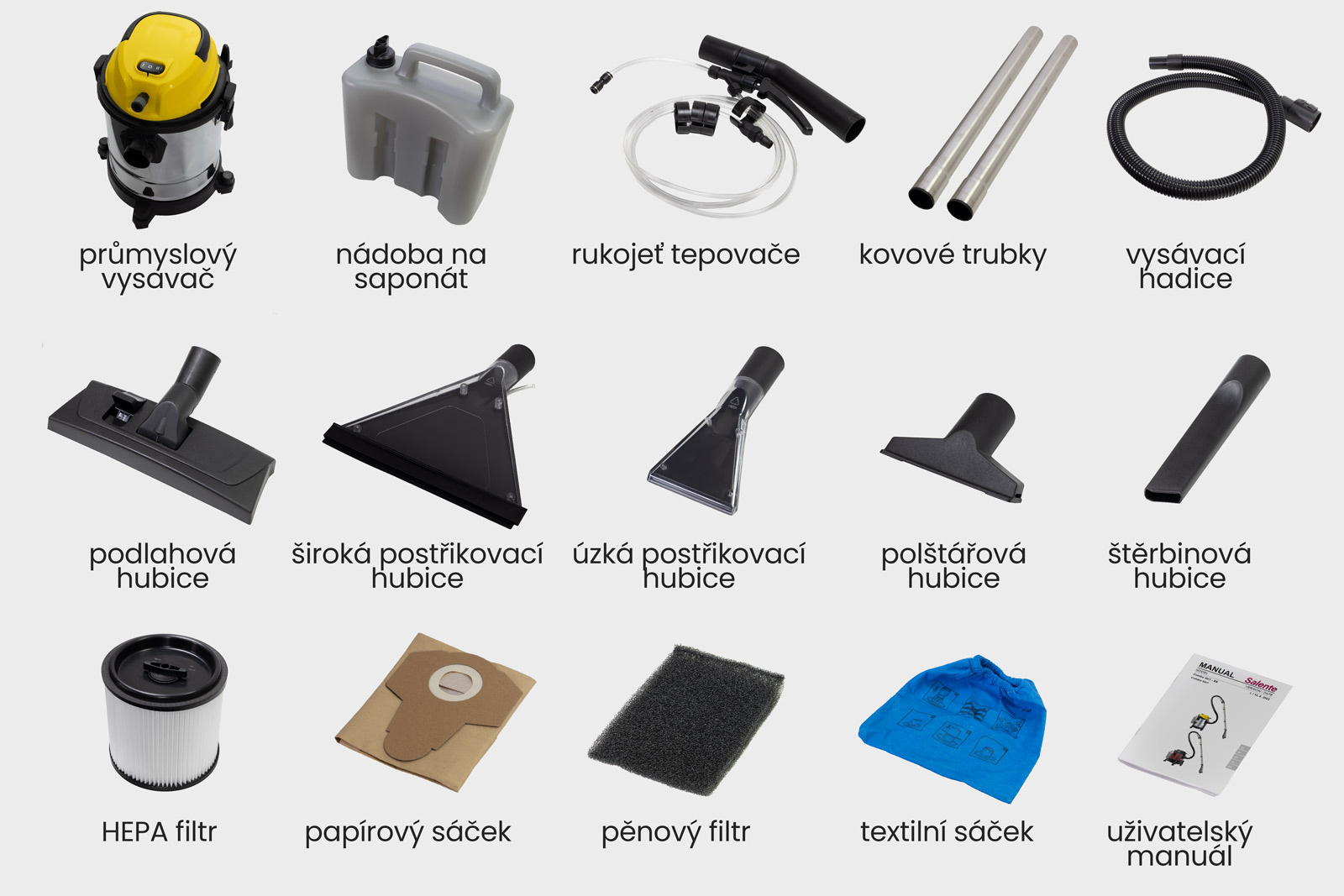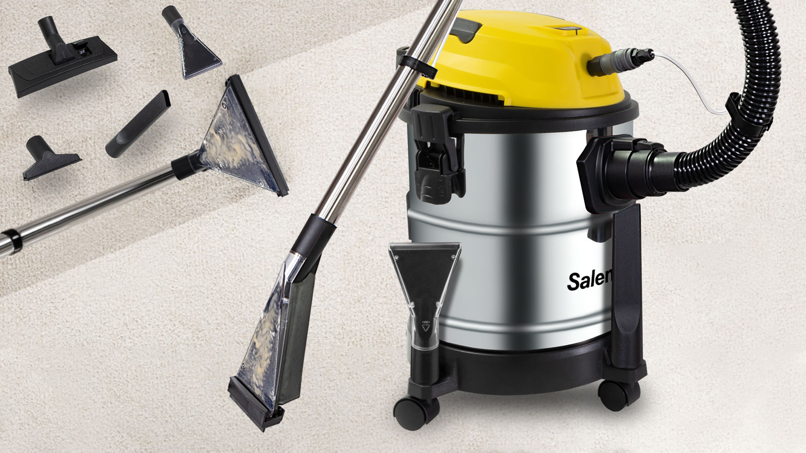 Salente Combo 4v1, vysavač pro mokré a suché vysávání, tepovač, fukar, nerez nádoba