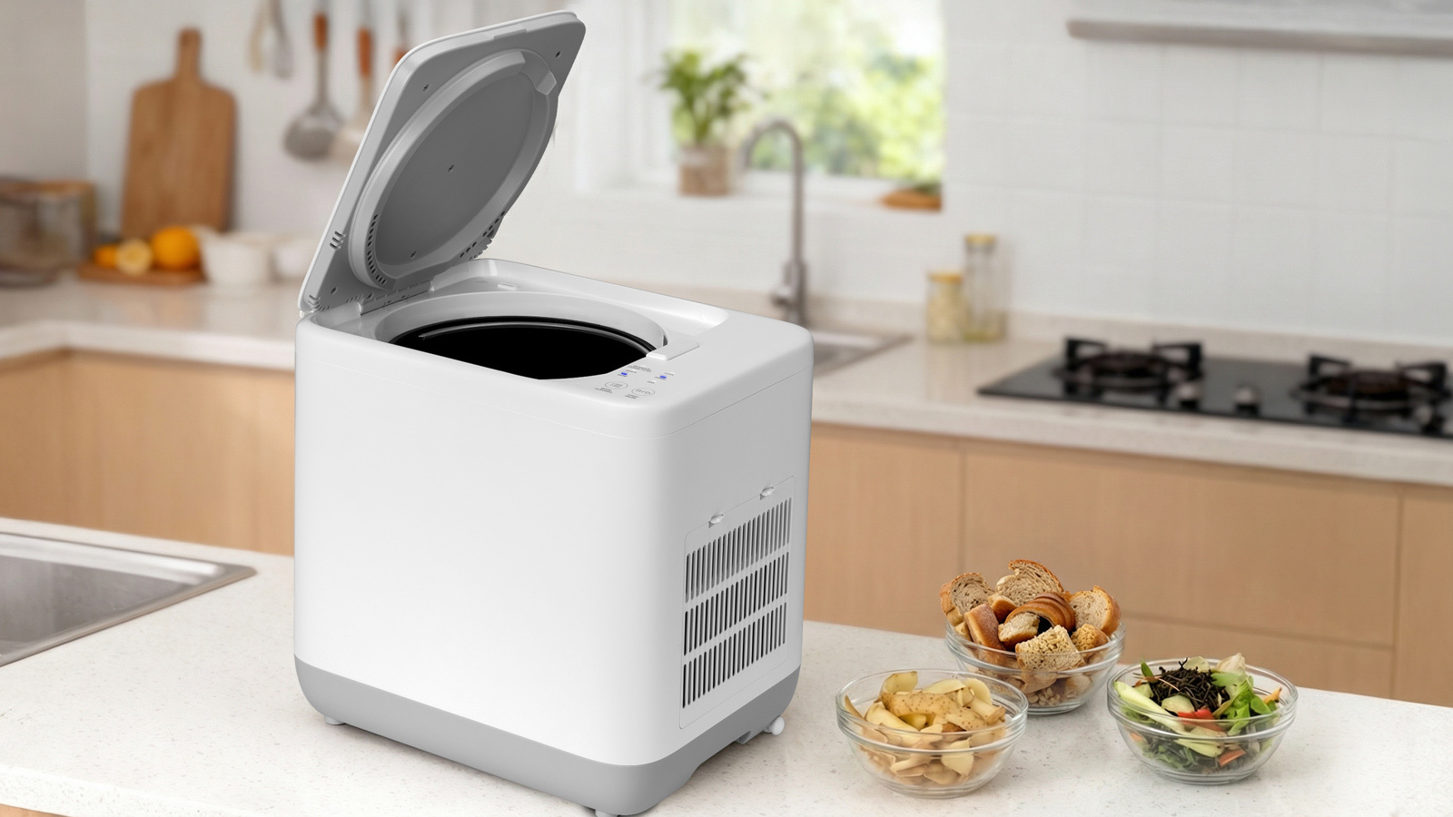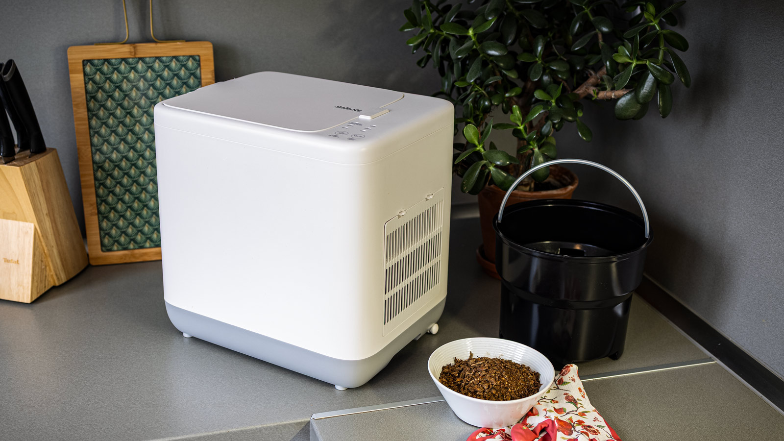 Vzhledem k rozměrům 33 × 25,7 × 33,4 cm (při hmotnosti 7,8 kg) se zařízení vejde prakticky do každé kuchyně, aniž by překáželo při běžných činnostech. Jeho hlučnost je jen 50 dB, což je srovnatelné třeba s běžným ruchem v kanceláři – ekologické zpracování bioodpadu tedy neruší sousedy ani spící děti.