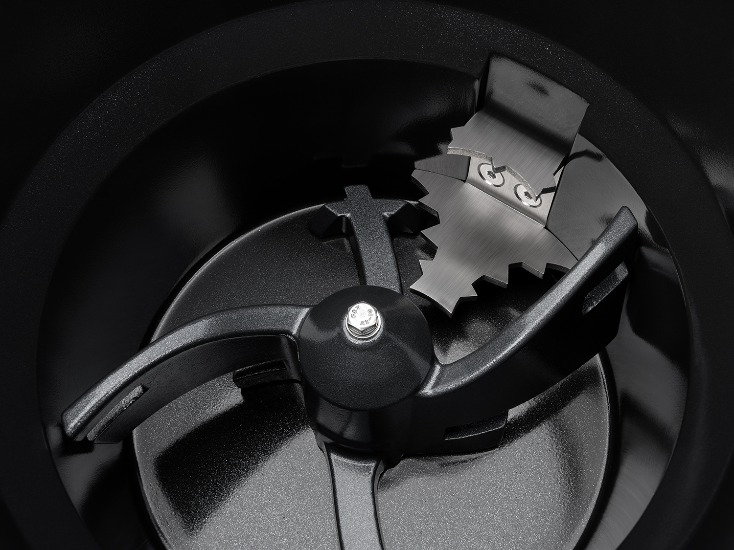 • Dvojitý extra robustní nerezový sekací nůž (tloušťka materiálu 4 mm)