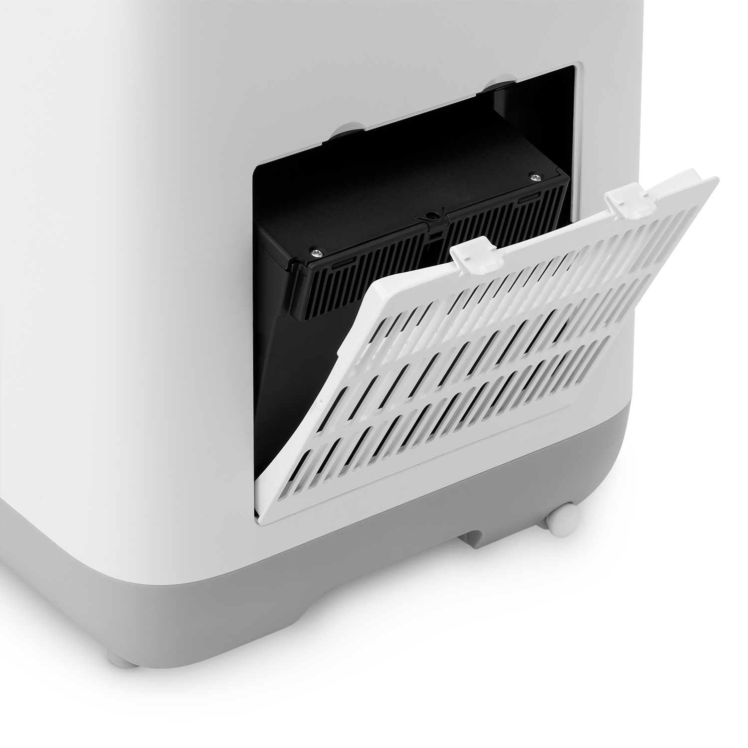 Nepostradatelnou součástkou elektrického kompostéru je i protipachový filtr s aktivním uhlím (s životností 300 hodin provozu), který chrání vaši kuchyň před jakýmkoliv nepříjemným zápachem. Právě díky němu je možné mít kompostér nikoliv v koutu zahrady, ale přímo doma. Součástí filtračního systému je navíc i doplňkový omyvatelný molitanový předfiltr, který funguje jako první obranná linie a také prodlužuje životnost hlavního uhlíkového filtru.