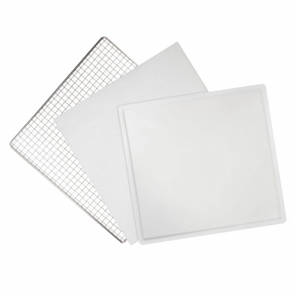 Výbavou navíc je u tohoto modelu sada deseti sušících plat s jemným síťováním pro sušení jemnějších a lepkavých surovin (např. hub, bylinek, banánů, rajčat atp.). Dodáván je i odkapávací tác na dno sušičky, který zachycuje přebytečné šťávy z některých surovin a výrazně tak usnadňuje čištění nerezového interiéru sušičky. Plata i tác mají rozměr 39,4 × 39,4 cm.