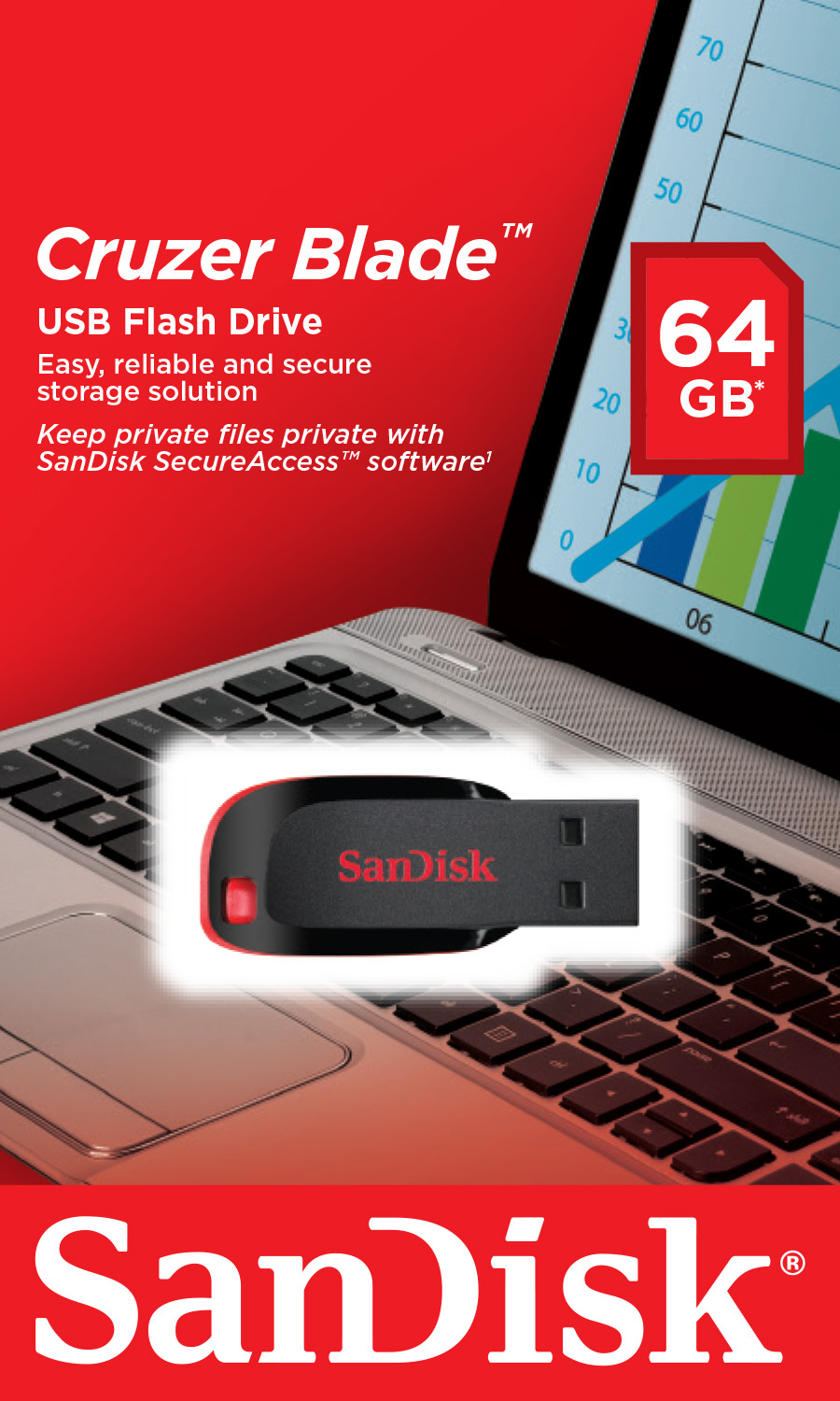 Mějte své oblíbené soubory u sebe na malém a snadno přenosném SanDisk® Cruzer® Blade™ USB Flash disku. Díky svému úhlednému vzhledu a a vysoké hodnotě je SanDisk Cruzer Blade USB Flash disk malým, ale rychlým způsobem jak ukládat, přenášet a stahovat svá digitální data z pc na pc nebo je mít s sebou na cestách. Jednoduše hoďte své fotky, melodie a další zábavné soubory na SanDisk Cruzer Blade a začněte je sdílet se svou rodinou a přáteli. Je to maximálně jednoduché, všechno můžete díky nejmenším flash diskům SanDisk nosit v kapse.