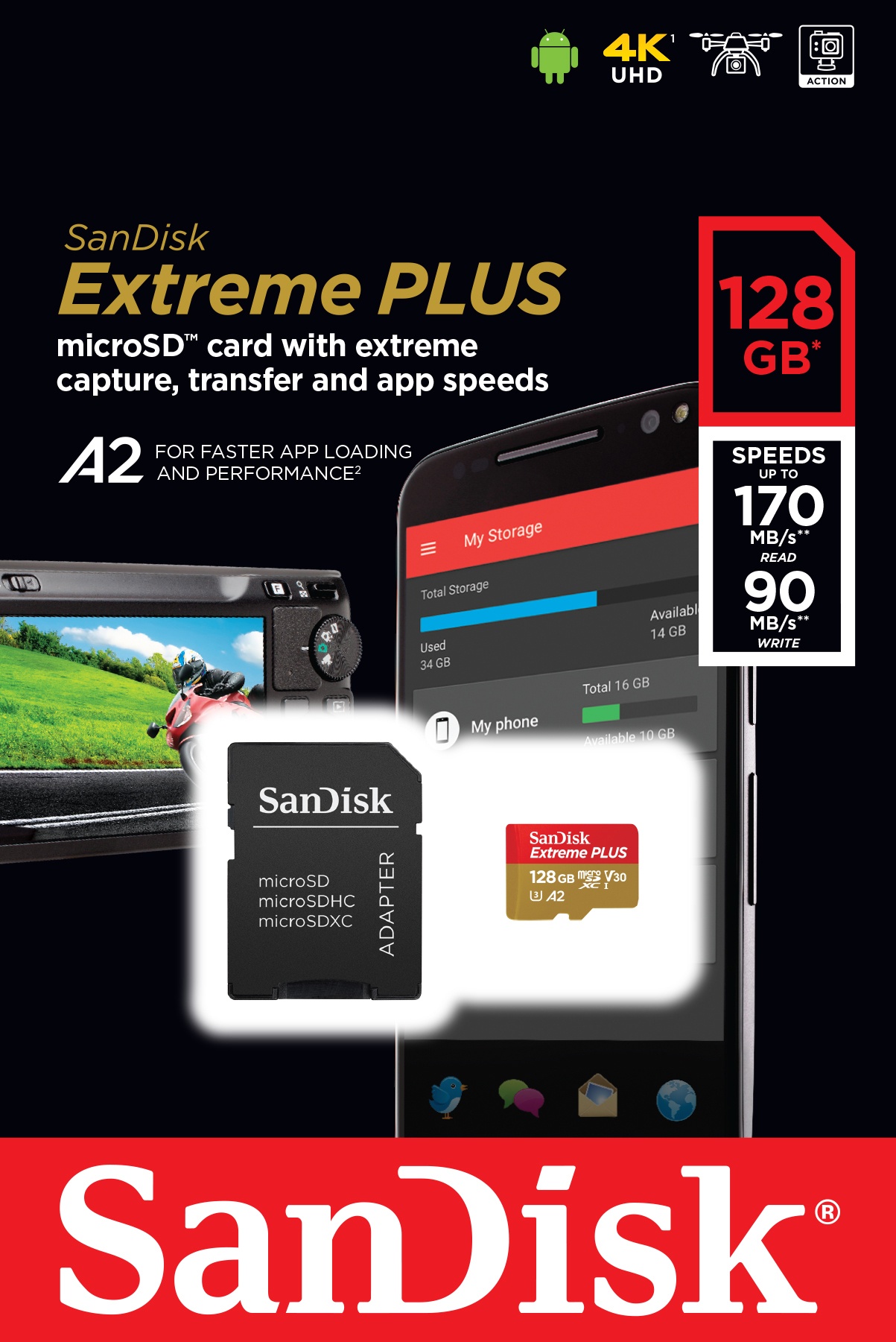 SanDisk Extreme Plus microSDXC 128GB 170MB/s +ada.