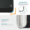 Taška je vyrobena ze tří vrstev textilie - vnější voděodolný materiál, který odolá cákancům vody, střední nárazu vzdorný materiál a vnitřní měkký materiál. Díky těmto třem textiliím máte jistotu, že je vaše zařízení v bezpečí za všech okolností. Rohy brašny jsou navíc opatřeny ochranou rohů zařízení.