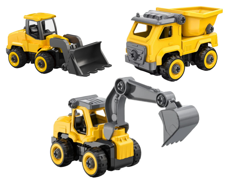 Obsah balení: Stavebnice Bagr 27 dílků Stavebnice Nakladač 26 dílků Stavebnice Sklápěč 25 dílků Návody