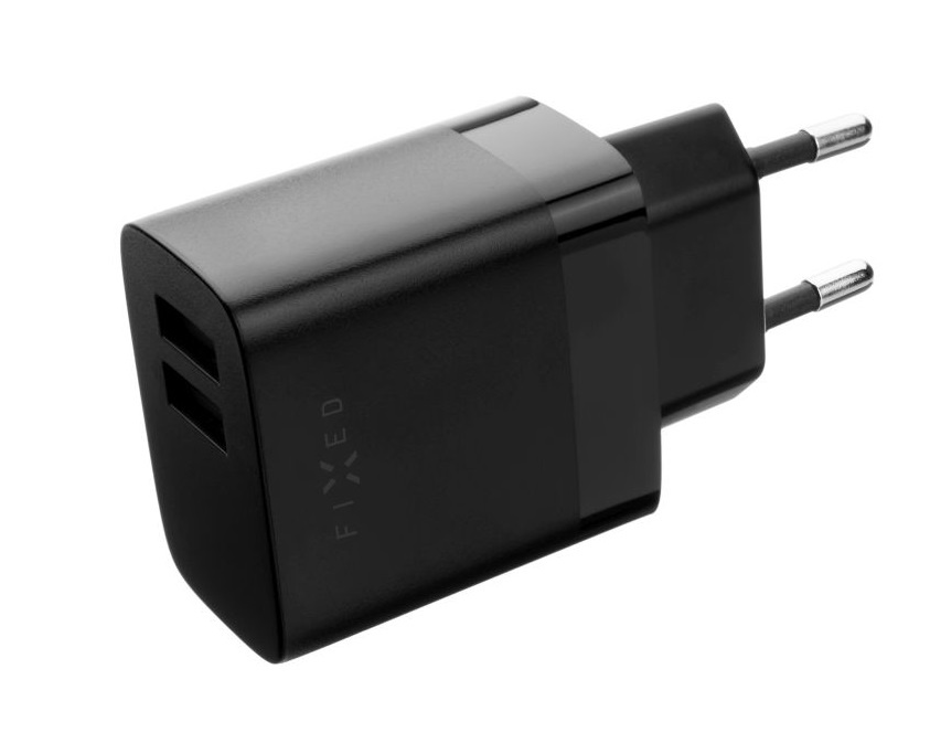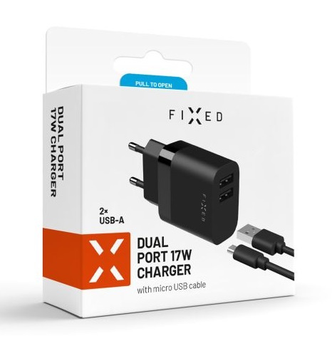 Set nabíječky FIXED s 2xUSB výstupem a USB/micro USB kabelu, 1 metr, 17W Smart Rapid Charge, černá