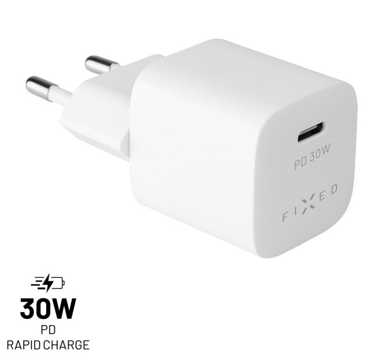 Síťová nabíječka FIXED Mini s USB-C výstupem a podporou PD, 30W, bílá