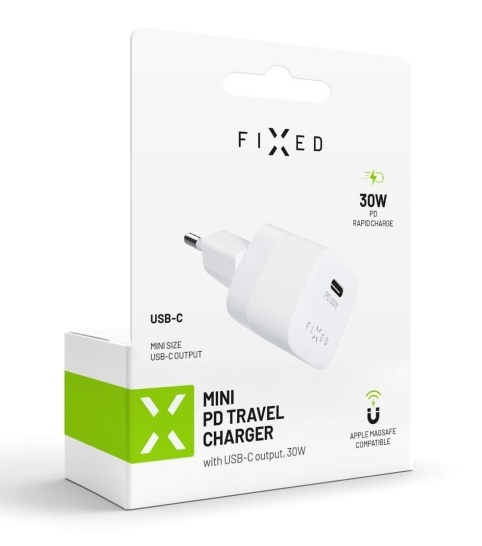 Síťová nabíječka nové generace FIXED s výkonem 30W a USB-C vstupem se postará o rychlé a bezpečné doplnění energie ve vašem moderním smartphonu, tabletu nebo menšího notebooku. Díky USB-C portu s podporou Power Delivery 3.0 dokáže doplnit energii pro kompatibilní zařízení výkonem až 30W a výrazně tak zkrátí dobu nabíjení oproti klasickým nabíjecím adaptérům. Je proto ideální především pro nabíjení nejmodernějších smartphonů a tabletů předních výrobců i jako doplněk MagSafe nabíječky. Tělo nabíječky je opravdu miniaturní, snadno se vejde i na hůře dostupné zásuvky za nábytkem a podobně. Nabíjení je maximálně bezpečné a nehrozí žádné přehřívání ani přepětí. S nabíjecím adaptérem FIXED už nebudete mít strach, že vám dojde energie ve vašem mobilním zařízení, ať už jste doma, v kanceláři nebo na cestách.