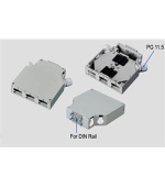 Optický box 12C DIN 6xSCDuplex Popis produktu: Optický rozvaděč/box pro umístnění na DIN lištu šedé barvy pro max. 6 SC duplex spojek, kovový se šroubovatelným víkem pro zakončení max. 12 optických