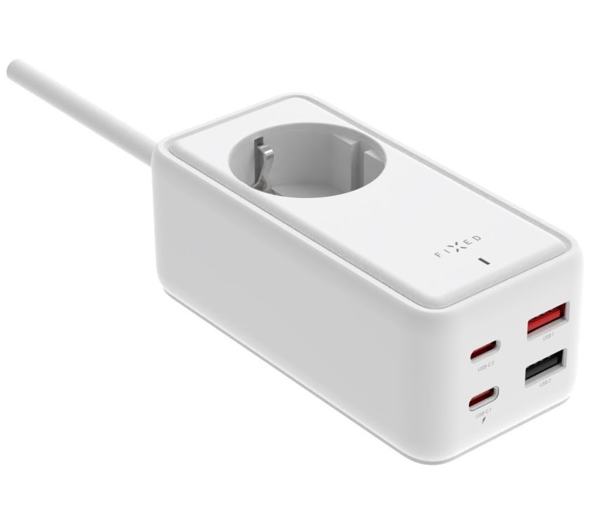 Síťový prodlužovací adaptér FIXED Charging Strip s integrovaným kabelem o délce 1,5 m nabízí celkový výkon až 65 W. Kombinace prodlužovací zásuvky a nabíjecí stanice umožňuje zapojit například notebook, tablet, smartphone či další elektroniku do jediného zdroje napájení a mít tak stále uklizený a organizovaný stůl, což oceníte jak doma, tak v kanceláři. Pomocí dlouhého kabelu bez námahy dosáhne i do vzdálených zásuvek. Adaptér je vybaven unikátní technologií GaN III s polovodiči z nitrid galia, které umožňují zmenšit rozměry nabíječky, a přitom bezpečně a efektivně zrychlit nabíjení bez přehřívání. Díky kombinaci zásuvky a čtyř portů (2x USB-C, 2x USB-A) lze nabíjet s celkovým výkonem 65 W, kdy jeden USB-C port vždy zůstane s vysokým výkonem 45 W, zbytek výkonu se rozdělí mezi ostatní porty. Při zapojení zařízení adaptér sám rozpozná, o jaké zařízení se jedná a dodá mu příslušný výkon dle jeho potřeb, s podporou technologie Power Delivery 3.0 se zároveň výrazně zkracuje doba nabíjení. S prodlužovacím adaptérem FIXED Charging Strip se vaše každodenní činnosti stanou zas o něco jednodušší.