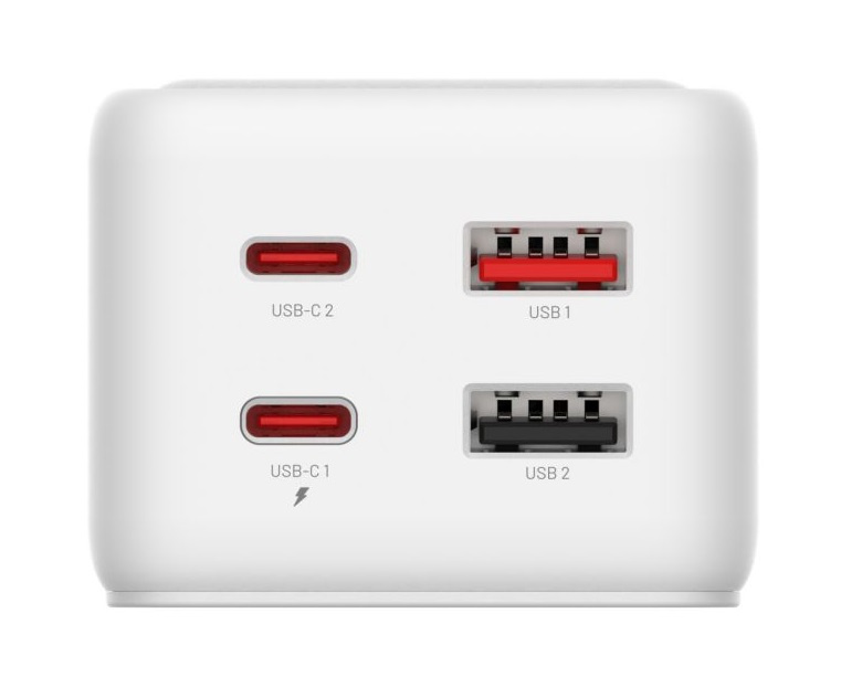 - zásuvka a čtyři nabíjecí porty - 2x USB-C a 2x USB-A