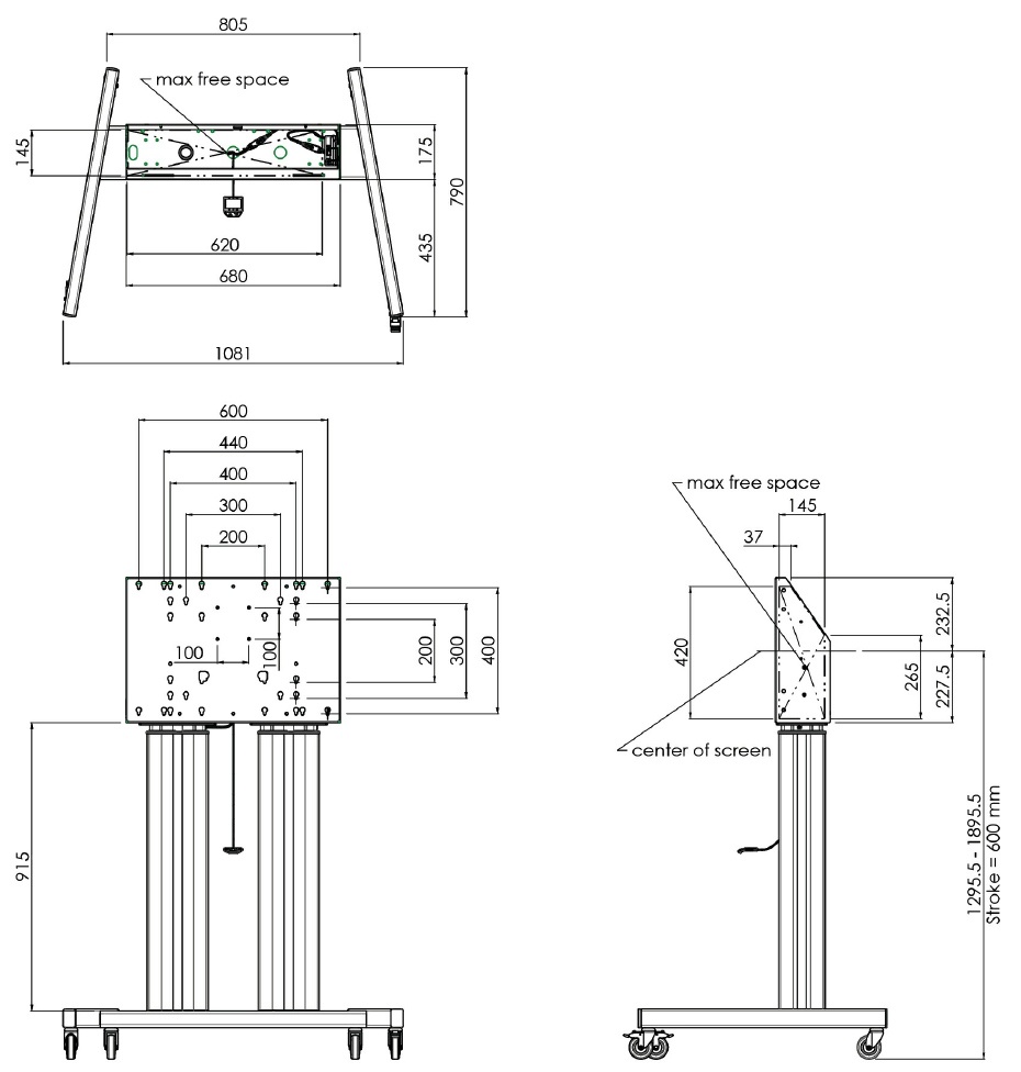 Stojan s elektrickým zdvihem využijete především v oblasti vzdělávání, digitální tvorby nebo produktového a firemního marketingu. Model 062.7105 nabízí snadnou změnu výšky stojanu až o 600 mm, takže střed obrazovky se může pohybovat v rozpětí 1 295,5 – 1 895,5 mm.
