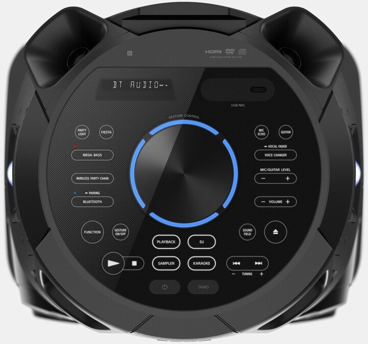 Zajistěte, ať se všichni na párty baví, ať už jsou s vámi kdekoli – s všesměrovým párty zvukem. Díky výkonným výškovým reproduktorům a účinným a šikmým středopásmovým reproduktorům hudba osloví všechny účastníky párty – ať už budou stát nebo sedět, zpívat či tancovat. Atmosféru zajistíte pulzujícím všesměrovým párty osvětlením a osvětlením reproduktoru. Další zábavu zajistí funkce karaoke, ovládání gesty a aplikace Fiestable. Připojení k televizoru umožní výstup HDMI™ (ARC).