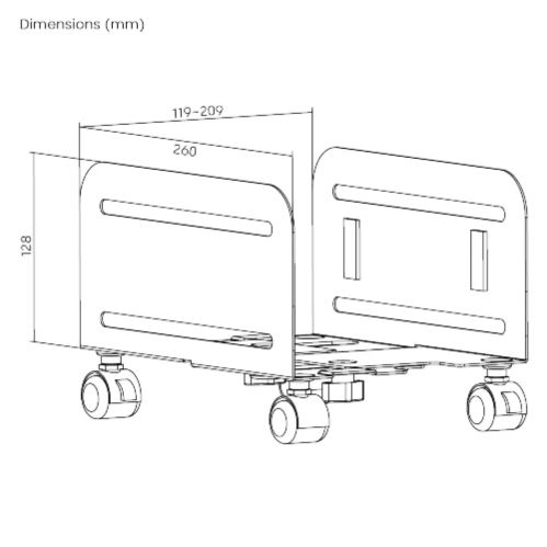 Stojan pod PC Brateck CPB-4 kompatibilní s desktopovými počítači o šířce 119-203 mm, s nosností až 10 kg.