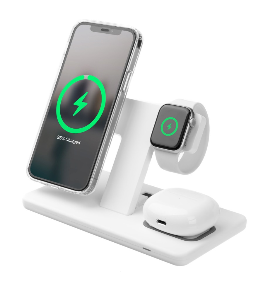 - určeno pro nabíjení Apple iPhone (série 12 a vyšší), Apple Watch a sluchátek/telefonu s bezdrátovým nabíjením