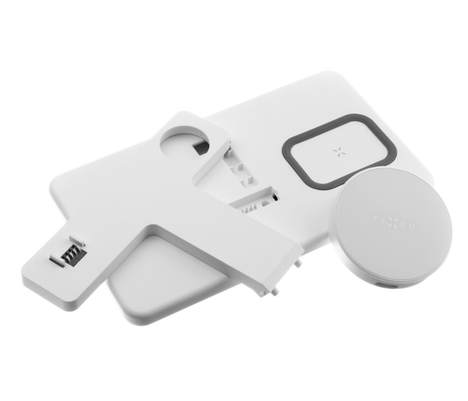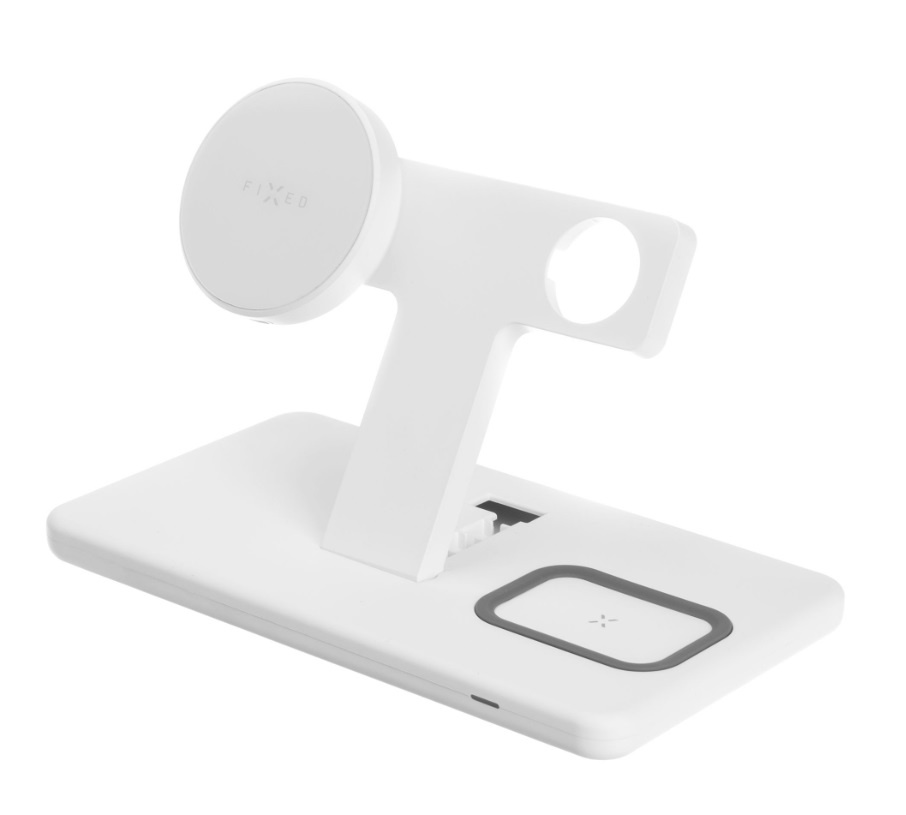 Stojánek s bezdrátovým nabíjením 3v1 FIXED MagPowerstation, MagSafe, 15W+15W+5W, bíly