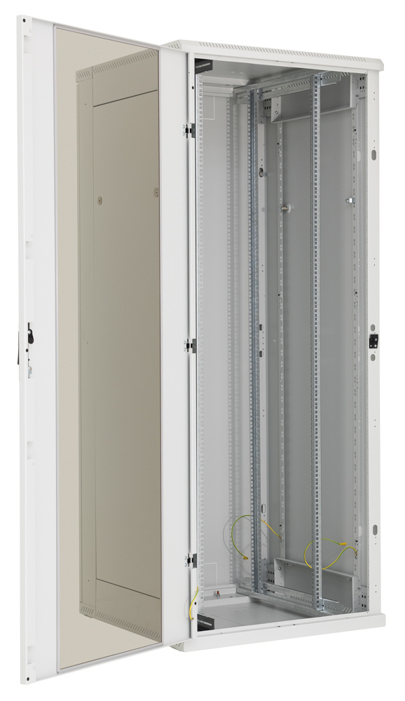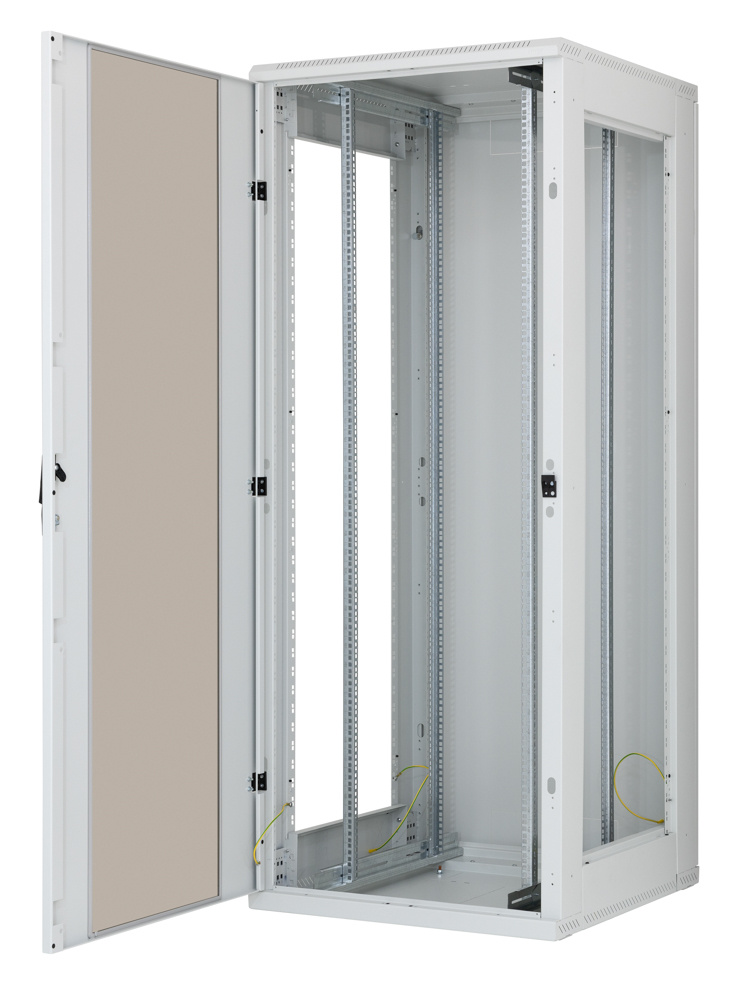 * dveře jednokřídlé nebo dvoukřídlé ve variantách celoplechové, perforované (80 % a 86 % prostupnost) nebo prosklené s bezpečnostním tvrzeným sklem 4 mm, které mohou být na přední i zadní straně rozvaděče,