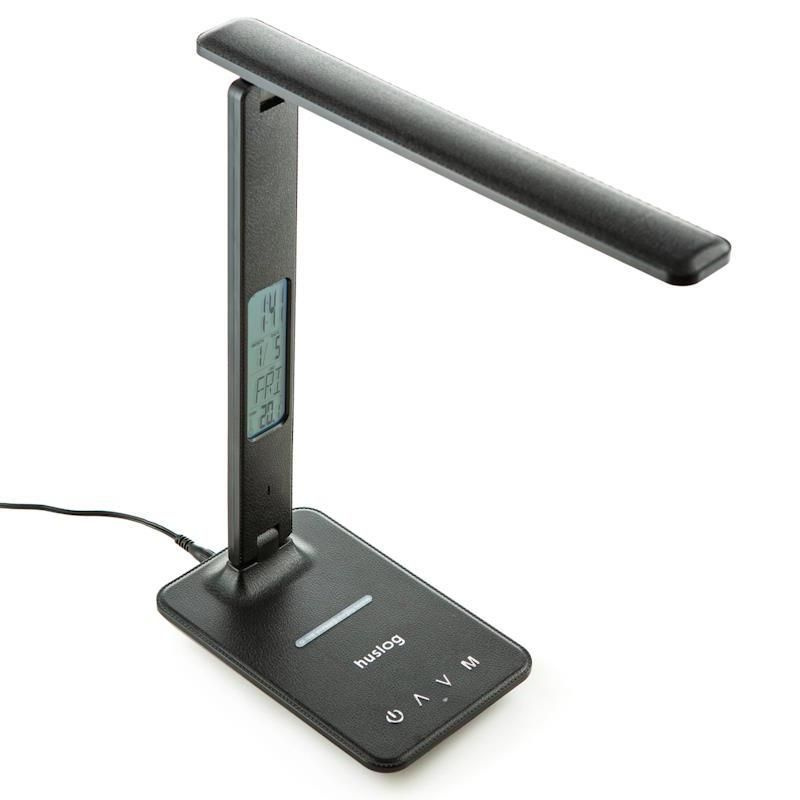 Stolní LED lampička Huslog černá s displejem a bezdrátovou nabíječkou