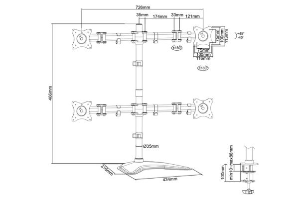 Flexibilní univerzální držák monitoru pro nastavení 4 obrazovek v dokonalém zarovnání. Snadné otočení horizontálně i vertikálně. Jednoduše upravte výšku pohledu podle potřeby. Díky mikro nastavení hlav můžete snadno vyrovnat výšku i mírně odlišných monitorů. Stojan na monitor umožňuje instalaci LED a LCD monitorů všech značek. Jednoduše si všimněte velikosti VESA a hmotností vašich monitorů, abyste mohli vybrat vhodný stojan.