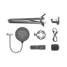 Obsah balení: Mikrofon, stolní držák s ohebným ramenem, Pop-filtr, pěnová hudba, anti-vibrační košík