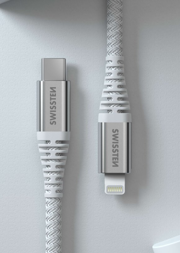 SWISSTEN DATOVÝ KABEL KEVLAR USB-C / LIGHTNING 1,5 M BÍLÝ