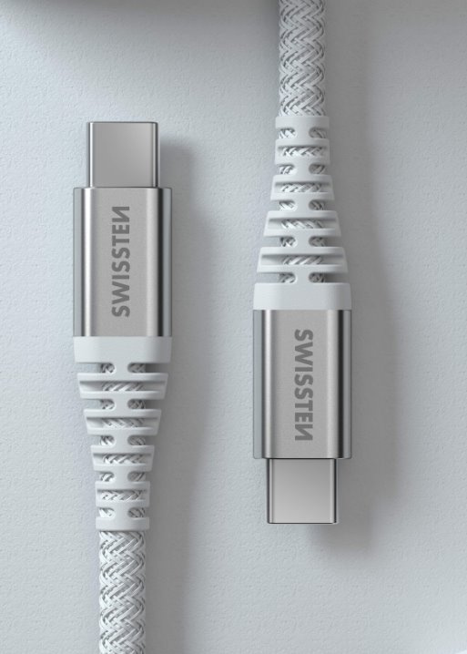 SWISSTEN DATOVÝ KABEL KEVLAR USB-C / USB-C 1,5 M BÍLÝ