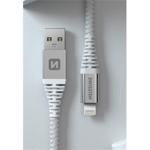 SWISSTEN DATOVÝ KABEL KEVLAR USB / LIGHTNING 1,5 M BÍLÝ
