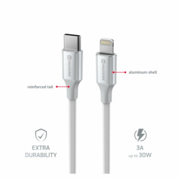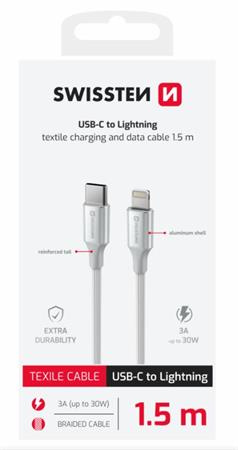 SWISSTEN DATOVÝ KABEL TEXTILE II USB-C / LIGHTNING 1,5 M BÍLÝ
