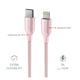 SWISSTEN DATOVÝ KABEL TEXTILE II USB-C / LIGHTNING 1,5 M RŮŽOVÝ
