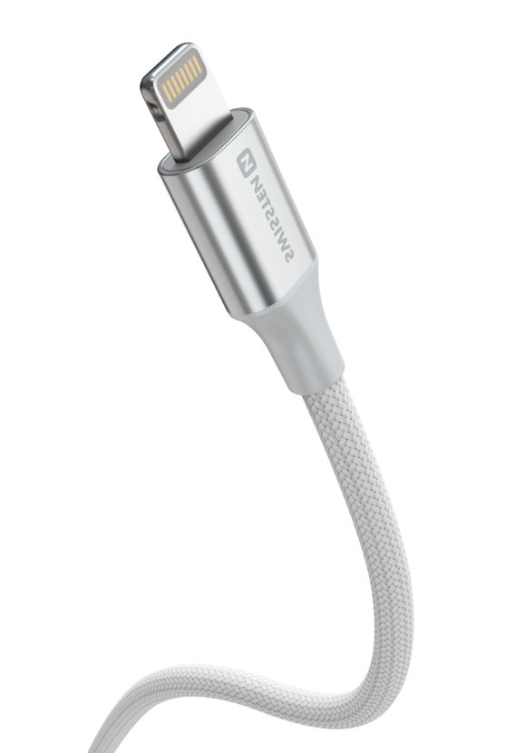 SWISSTEN DATOVÝ KABEL TEXTILE II USB / LIGHTNING 1,5 M BÍLÝ