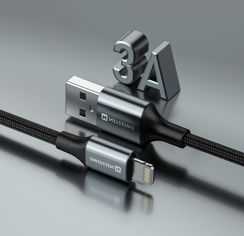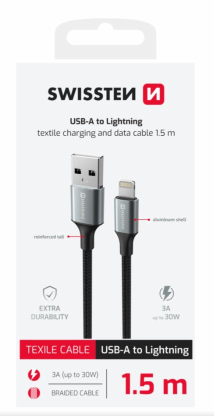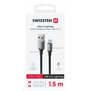 SWISSTEN DATOVÝ KABEL TEXTILE II USB / LIGHTNING 1,5 M ČERNÝ