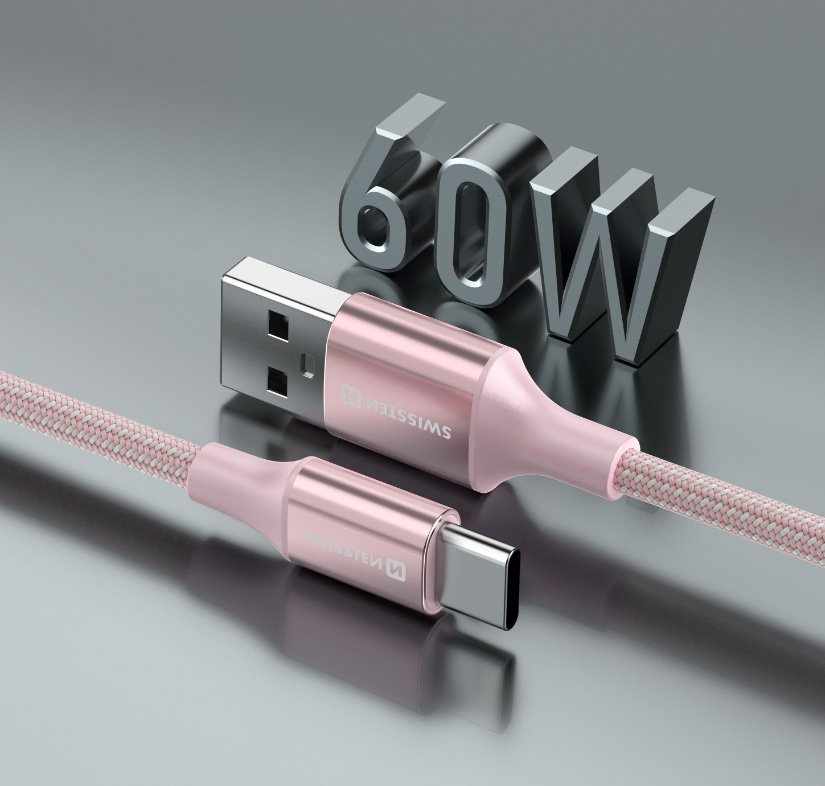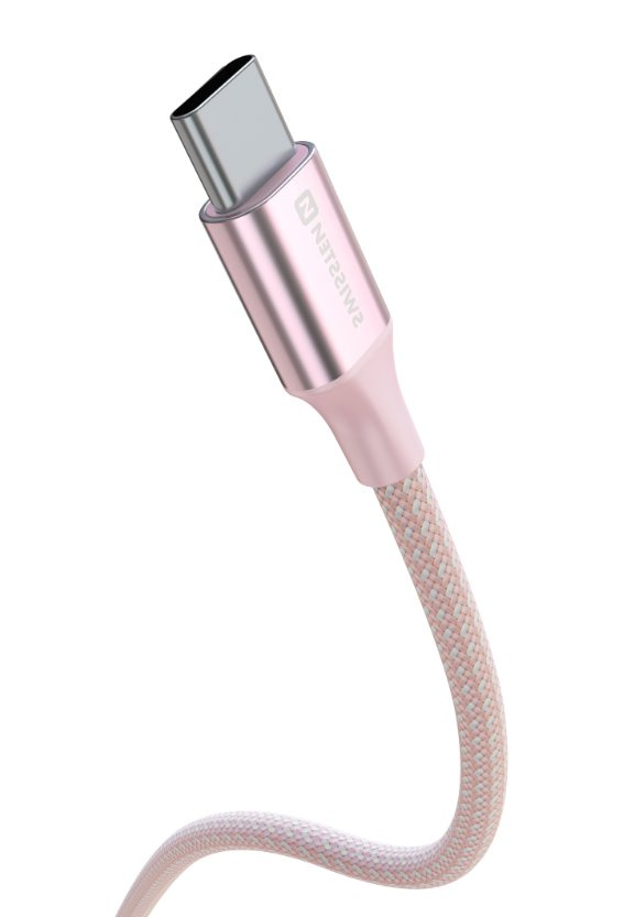 SWISSTEN DATOVÝ KABEL TEXTILE II USB / USB-C 1,5 M RŮŽOVÝ