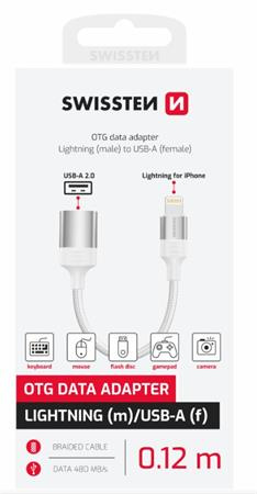 SWISSTEN OTG ADAPTÉR TEXTILE LIGHTNING (samec) / USB-A (samice) 0,12 M BÍLÝ