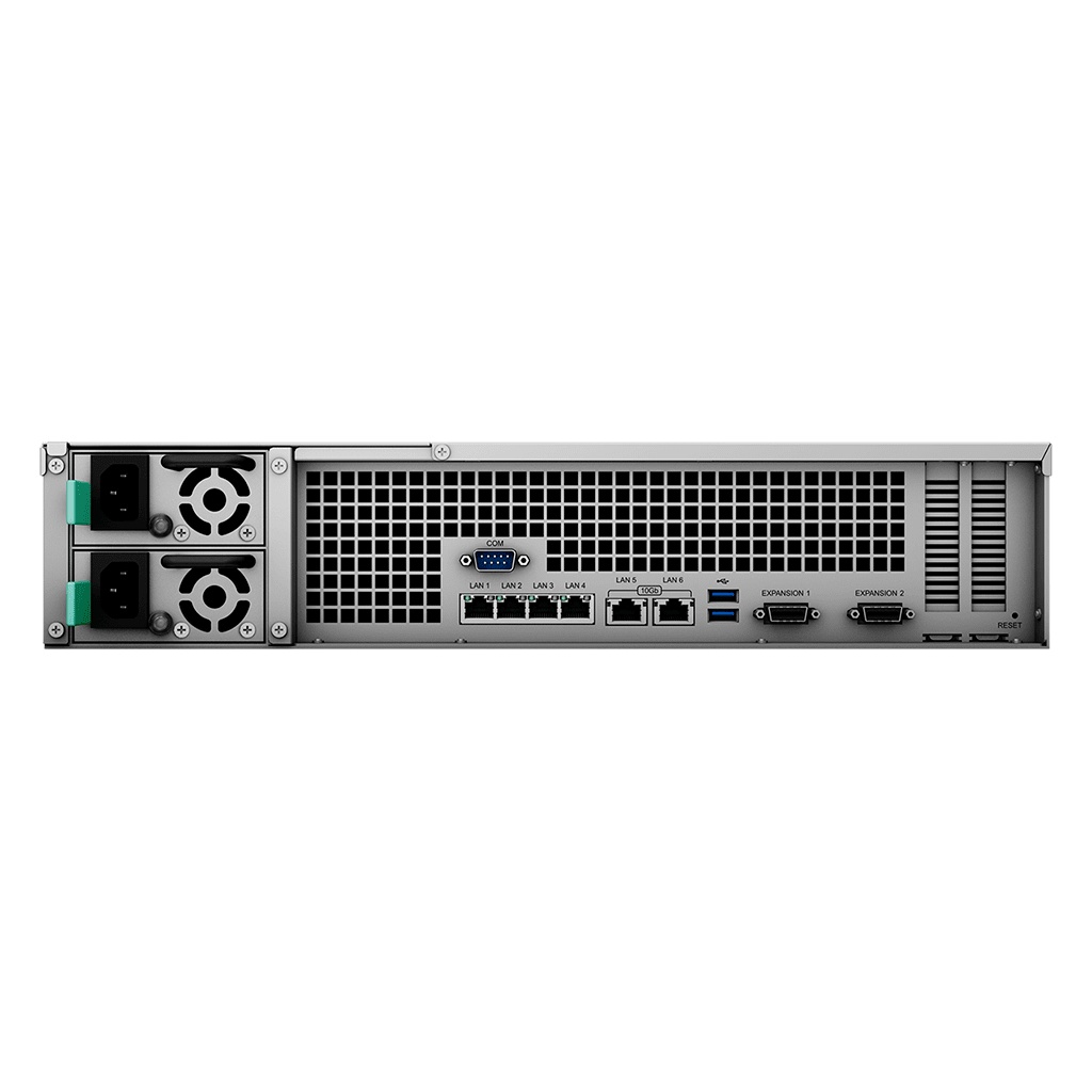 12 šachtové zařízení RS3621xs+ nabízí výkon s hodnotami IOPS při náhodném čtení 4K přes 238 000 a sekvenční propustnost při čtení 5 819 MB/s – skutečně výkonný podnikový nástroj. Kompletní záloha zdroje energie, 8 jádrový procesor, paměť ECC, pokročilá technologie pořizování snímků a automatické opravy souborů zajišťují, že zařízení RS3621xs+ dokáže být spolehlivým základem každé firmy pracující s daty.