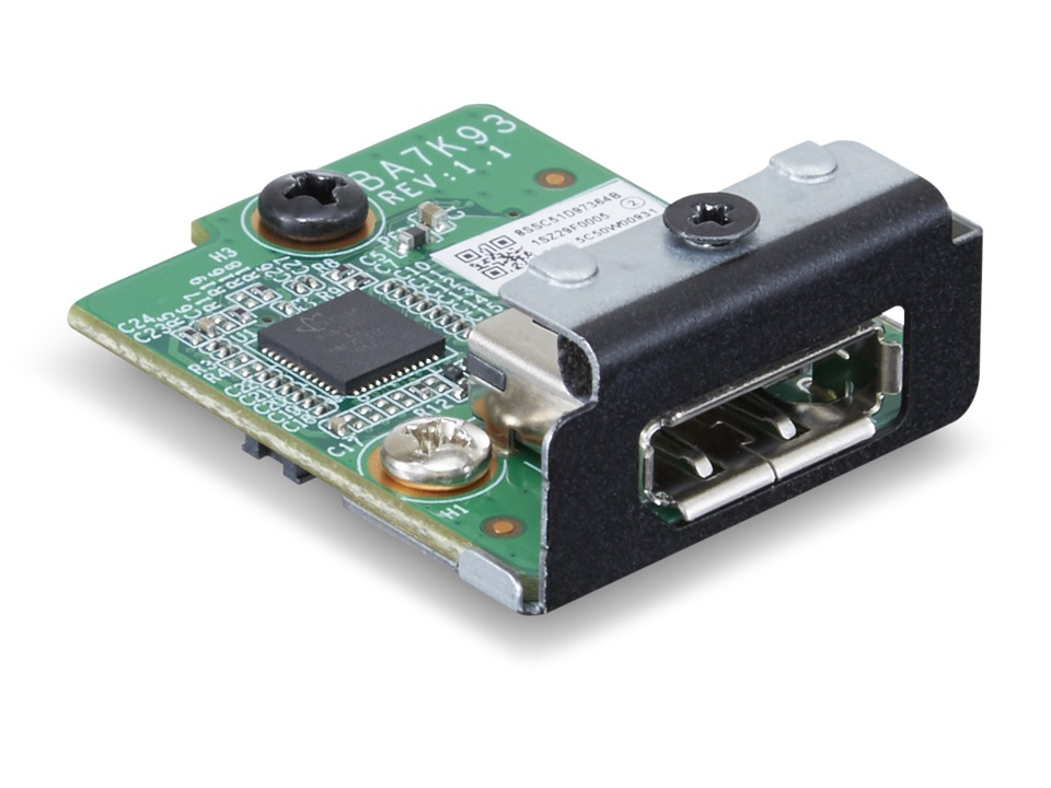 Rozšiřující karta ThinkCentre Tiny DP s konektorem BTB rozšiřuje port DP pro vybrané počítače prostřednictvím konektoru BTB.