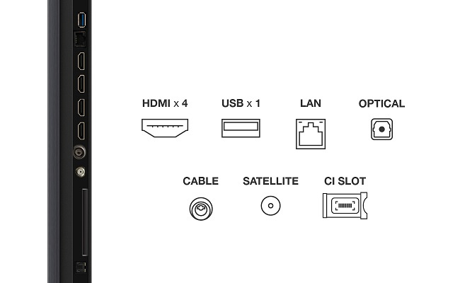 Televize – Google TV, Mini LED, 249cm, 4K Ultra HD, 100/120 Hz (144 Hz – herní režim), HDR10+, Dolby Vision, lokální stmívání, antireflexní obraz, DVB-T2/S2/C, 4× HDMI, 1× USB, LAN, WiFi, Bluetooth, DLNA, Chromecast, Miracast, HbbTV 2.0.3, herní režim, hlasové ovládaní, Google Assistant, Apple Airplay 2, párování s mobilním zařízením, Oneplay, VESA 600×400, repro 40 W, DTS:X, DTS Virtual:X, Dolby Atmos, Prostorový zvuk, vestavěný subwoofer, energetická třída E