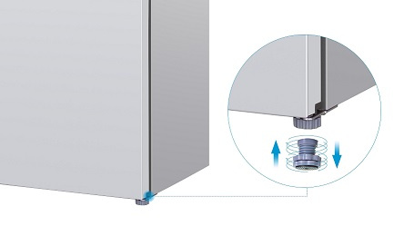 Stabilní a tichý provoz vaší lednice je díky nastavitelným nožičkám. Tyto praktické nožičky zajišťují pevné postavení na různých typech podlah a pomáhají minimalizovat vibrace a hluk, který může vzniknout během chodu spotřebiče.