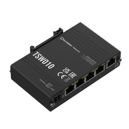 Teltonika TSW010 je cenově výhodný jednoduchý průmyslový Plug-n-play switch, u kterého není možná další konfigurace. Switch Teltonika TSW010 je vybaven 5 porty Gigabit Ethernet s rychlostí až 100 Mb/s, což zaručuje stabilní a spolehlivou konektivitu s ostatními zařízeními. Disponuje širokým rozsahem napájecích napětí 9-30 V s přepólováním a ochranou proti přepětí/přechodům. Kompaktní velikost, přední porty a integrovaný držák na lištu DIN usnadňují instalaci switche Teltonika TSW010 v ovládacích skříních.