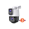 Venkovní otočná IP kamera s dvojí optikou a online sledováním pomocí mobilního telefonu a tabletu. Ukládání záznamů a fotografií na microSD kartu nebo Cloud. Rozlišení 2x 3MP pro video ve vysoké kvalitě, denní i noční provoz díky IR dosvitu až 30 m, ohnisková vzdálenost u fixní kamery 4,0 mm a u otočné kamery 6,0 mm, Wi-Fi b/g/n, 1x LAN RJ45 10/100 Mb/s, mikrofon a reproduktor, slot pro microSD kartu s velikostí až 512 GB. Úhel záběru 360° horizontálně a 90° vertikálně. Kamera podporuje detekci pohybu, detekci osoby, a automatické otáčení za pohybem/osobou. Součástí balení je držák na stěnu/strop.