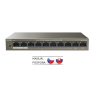 Tenda TEF1110P-8-63W PoE AT switch - 8x PoE 100 Mb/s + 2x Uplink 100 Mb/s, PoE max 63W, fanless,PoE+